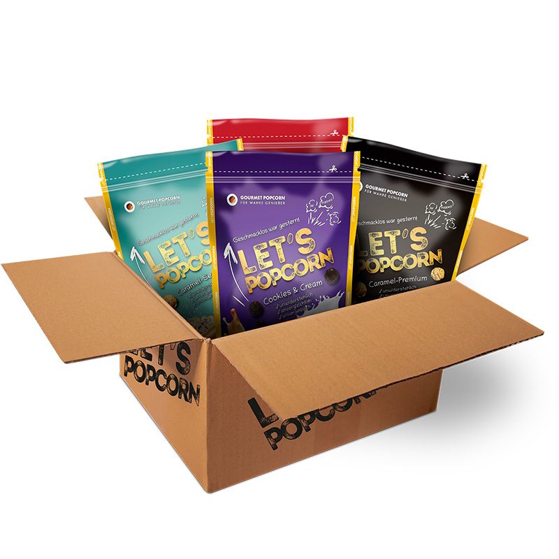6x Karamell-Popcorn mit Kakaokeks- und Creme-Geschmack (65%)